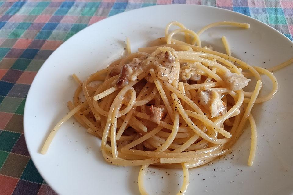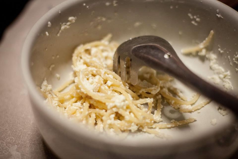 Quando la mia pasta bolle in acqua si sente intensamente l’aroma di mollica di pane caldo.