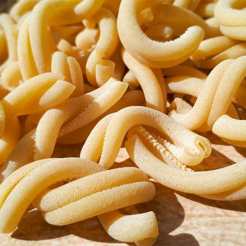 Le Caserecce Cappelli Originale 1915 sembrano realmente fatte a mano e sono buonissime. Si accoccolano felici in un abbraccio. Sono prodotte con Grano duro Cappelli Originale 1915 al 100% coltivato, raccolto e macinato in Italia