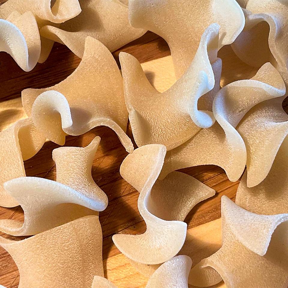 I Trucioletti Cappelli Originale 1915 nascono durante le riprese di Linea Verde 2022. E rimangono nascosti fino ai 30 anni del nostro Cappelli e alle Feste 2022 quando diventano la 'Sorpresa' del Pacco Cappelli. Li abbiamo regalati e fatti assaggiare a molte e molti di voi. Piano, piano, come spesso succede, sono diventati un formati speciale che piace ai bambini. Perché piccolo, discreto, sempre in movimento. La semola Cappelli dona loro un colore ambrato e una consistenza lineare. Da provare.