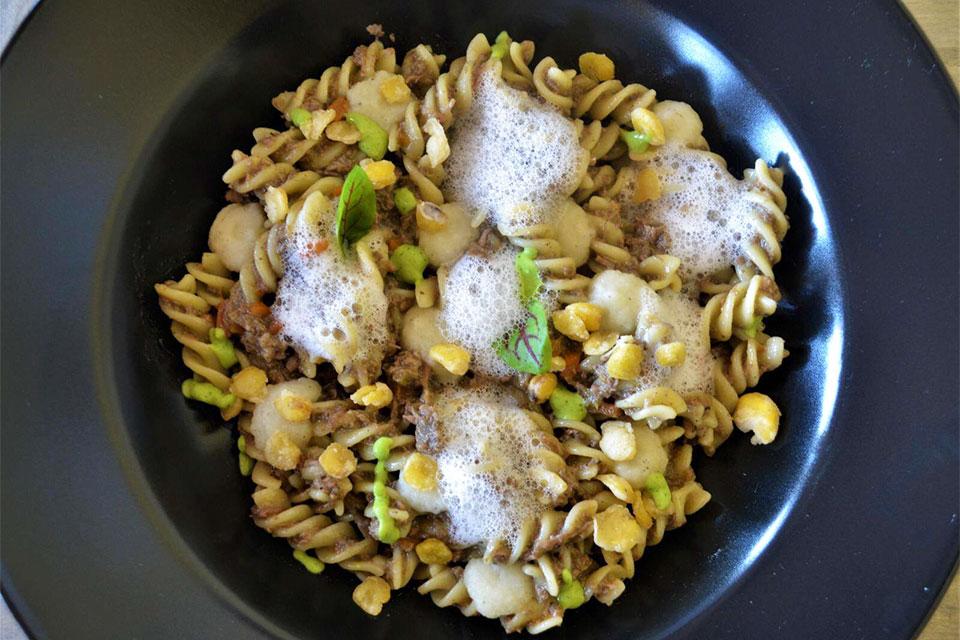 Perché ci sono i fusilli, il ragù d'agnello preparato secondo le 'leggi' di Gregory Nalon, la purea delicata di finocchio fresco, la cicerchia fritta e l'aria di caprino. Riduttivo chiamarli solo al ragù d'agnello vero?