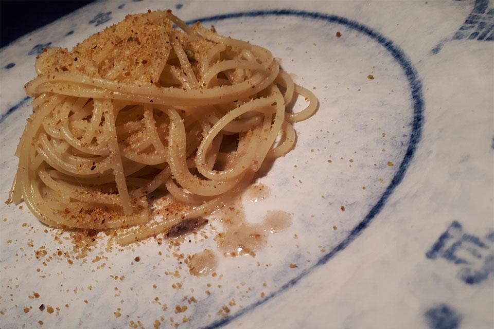 Dante con il suo extravergine Le Pietraie, Angela Concu e Fabio Stivali con la bottarga all'armagnac. C'è un quarto amico, Fausto Bizzirri. Il piatto in ceramica meraviglioso è il suo.