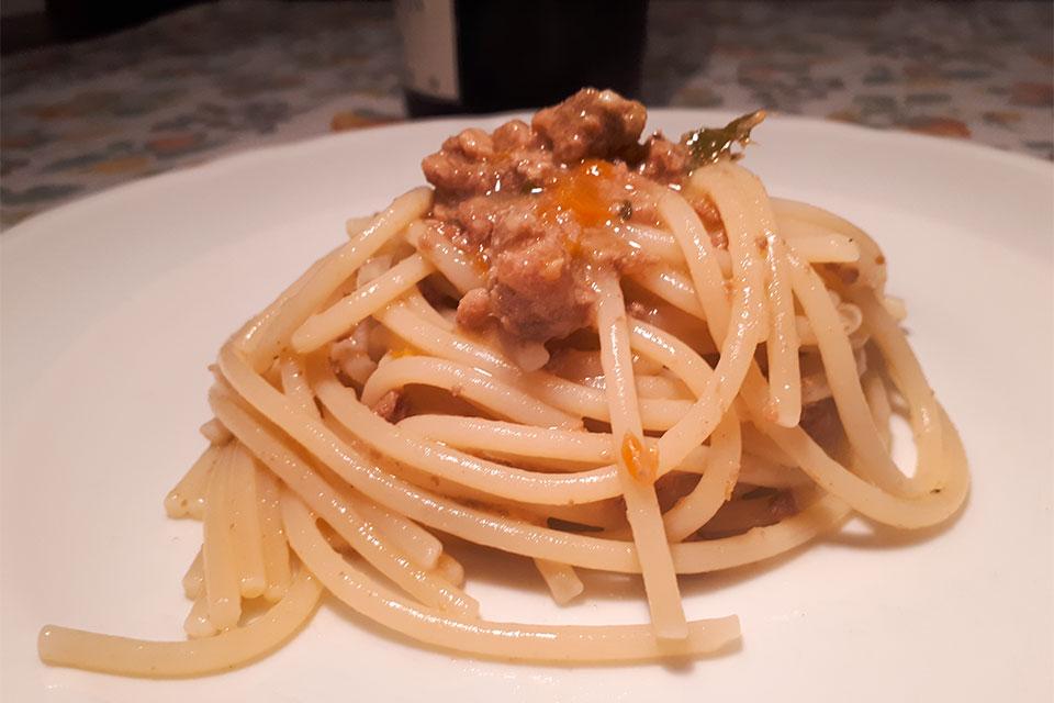 A Casa Latini, per deformazione professionale, trasformiamo sempre tutto in un buon ragù. Stavolta un ragù bianco realizzato con un battuto leggero di cipolla, sedano e carota fatto dorare in extravergine lentamente. Aggiungiamo, in questo caso, dei pezzettini di bollito ben sminuzzati a coltello e, prima di salare o pepare, assaggiamo qualora non fosse necessario. Noi ci abbiamo saltato i nostri Spaghetti Cappelli Originale 1915. Voi fate vobis.
