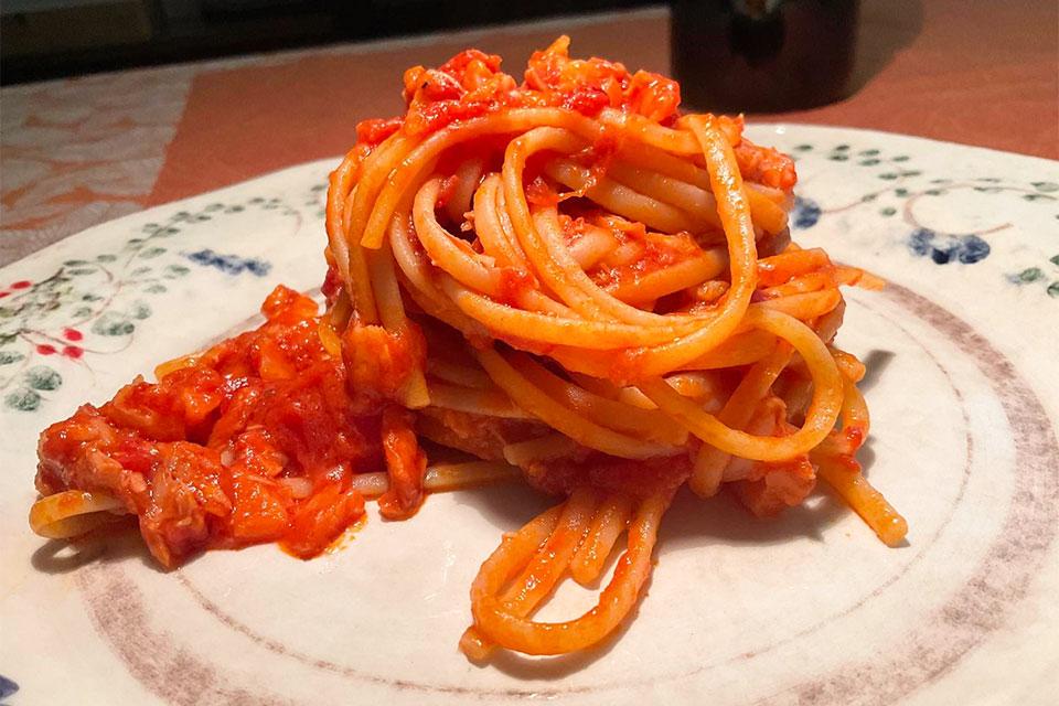 Cominciamo con queste Trenette all'arrabbiata di baccalà. E' una ricetta che zio Settimio prepara per i generi golosi. Che si prenotano per l'evento. Oggi ci saremo anche noi. Il segreto? Tantissimo peperoncino, cottura veloce del baccalà già bagnato. Aglio come se piovesse, nessuna erba aromatica. La scelta della pasta è caduta sulle Trenette. Ma viene bene con qualsiasi formato, anche corto.