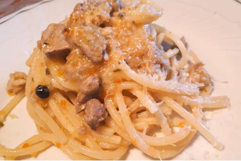 Trenette all'aglione con olive verdi