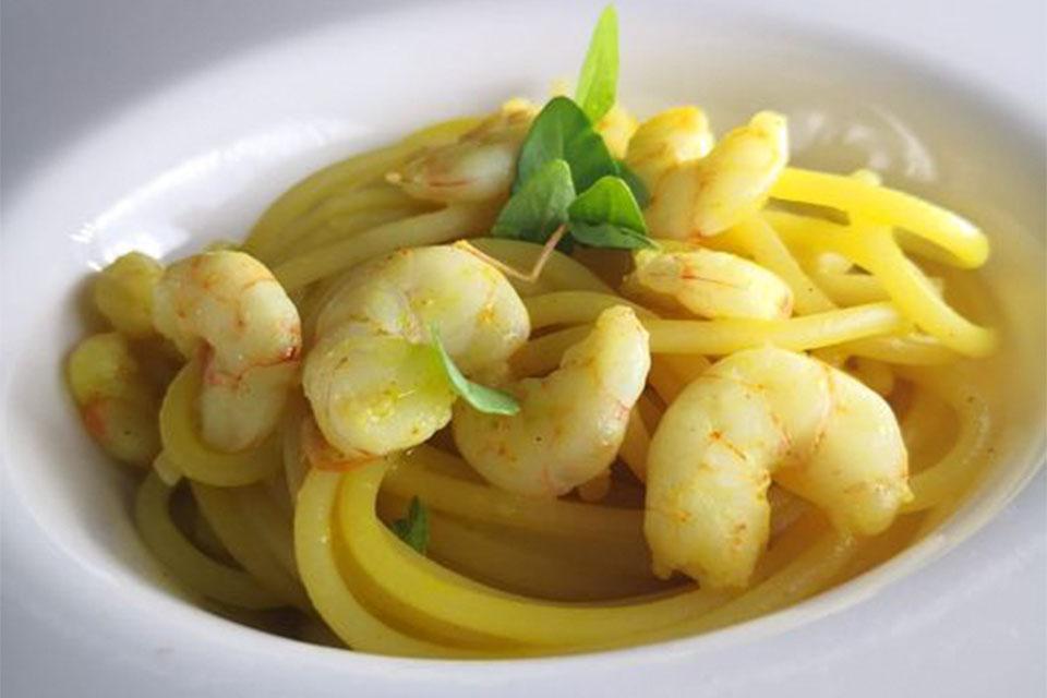 Per noi oggi Spaghetti Cappelli con gamberi rosa, pescato Adriatico, sgombro e trombolotto