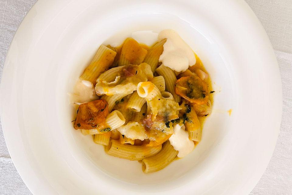 Maccheroni Cappelli Originale 1915 all'amatriciana di Pesca Saturnia e pecorino. Da provare in stagione.