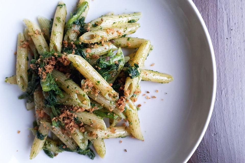 ... grazie Marco Domenella. Con penne rigate, acciughe olio del Garda dop e pane croccante.Questo piatto profuma di passato, presente e futuro. Buon Lunedì