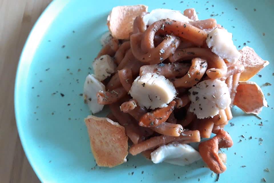 ... per questi strozzapreti cotti nella rapa rossa e capesante scottate al profumo di origano.