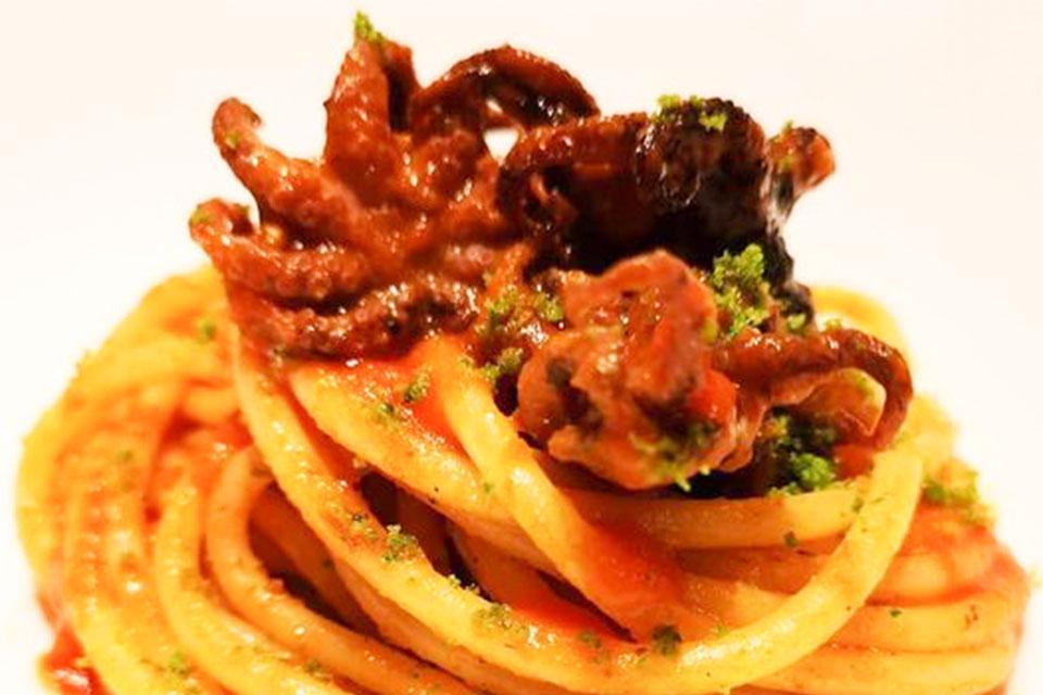 Spaghetti grandi, moscardini e pomodorini del piennolo. Buon Martedì