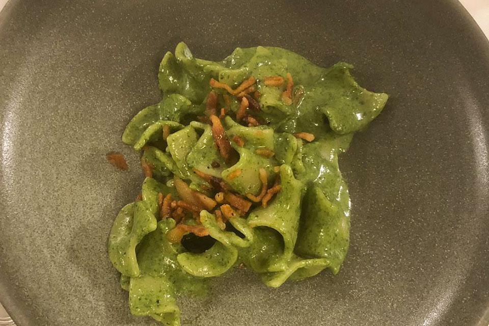 Stiamo parlando di Denis e Elis Marchetti che credono nella coltivazione e raccolta delle erbe spontanee come l'ortica. Trucioletti crema di ortica guanciale croccante e mandorle. Adesso รจ Domenica!!!