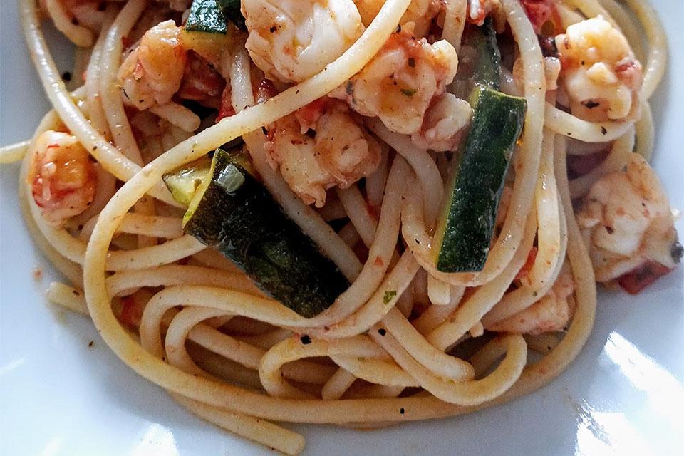 ... hai un grande spaghetto Senatore Cappelli condito con ottimo olio evo, mazzancolle, zucchine e pomodorini? Potrai godere al massimo. Parola del Maestro Gualberto Compagnucci