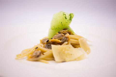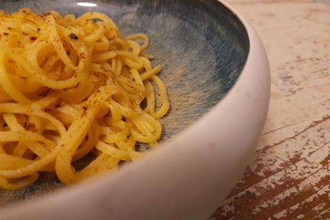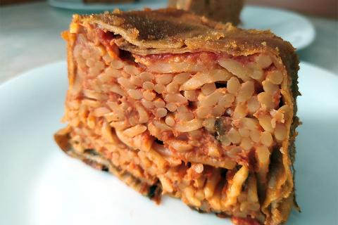 Schiacciata di carote e spinaci, salsa d'uva senapata