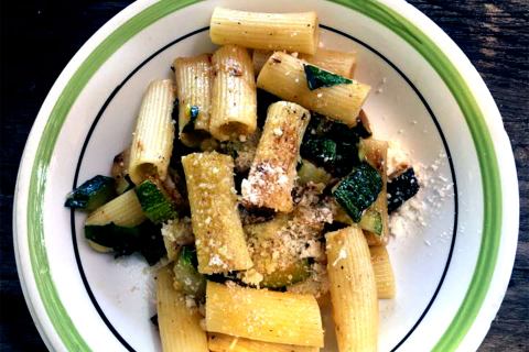 Casa Latini oggi: Spaghetti Cappelli Originale 1915, aglio di Nubia, peperoncino di mamma, zucchine dell'orto