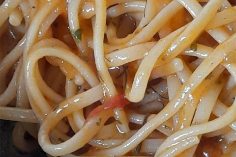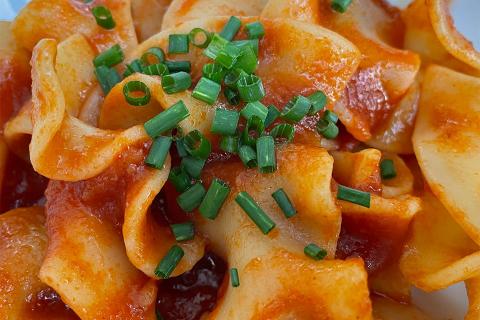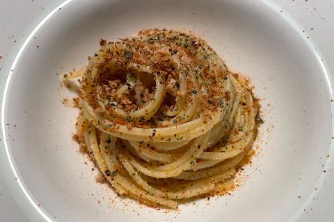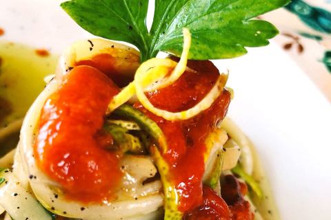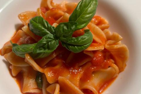 Sabato a Casa Latini con pomodoro, peperoni cruschi e bufaletta