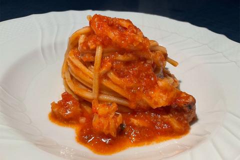 Nel pieno dell'Estate spaghetti grandi con i granchi