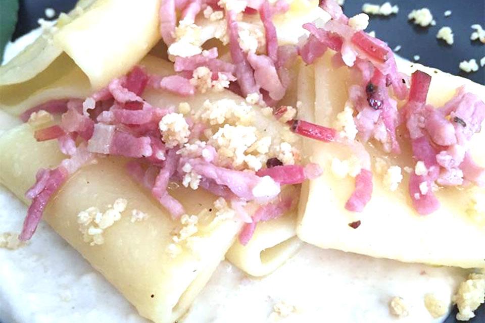Profumi e sapori d'autunno per i nostri mezzi paccheri con speck e castagne in doppia consistenza.
