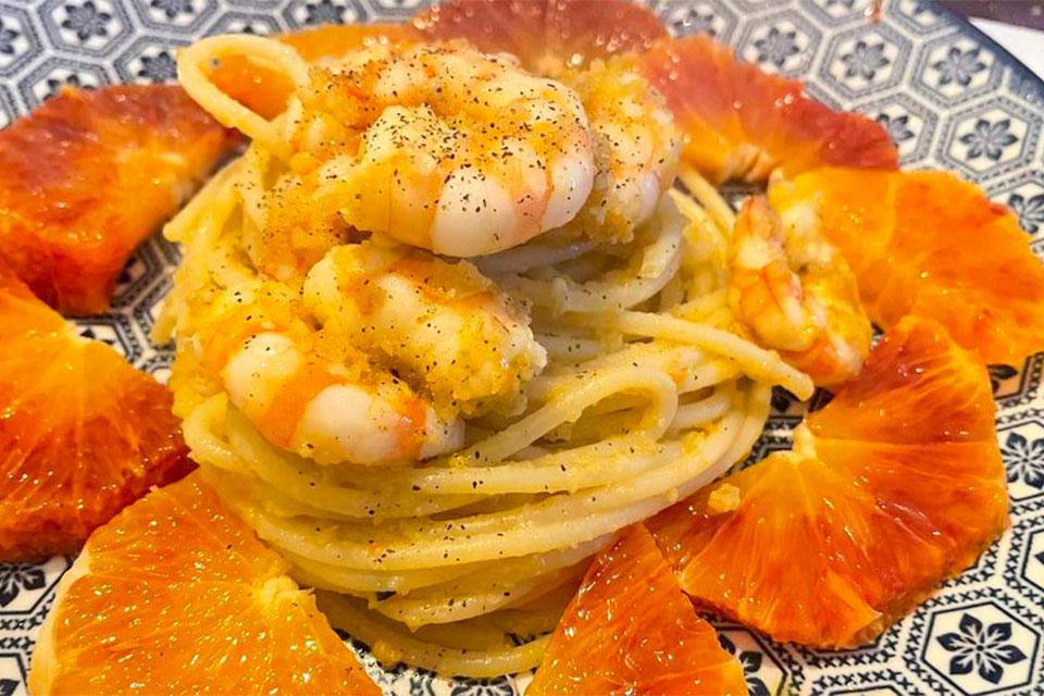 La costruzione di un piatto รจ come un mixaggio musicale. Si passa da un brano all'altro e la danza continua. Come in questa spaghetti con le mazzancolle, il pan grattato le arance e la buccia di arancia firmato da MomaDj. Grazie!!