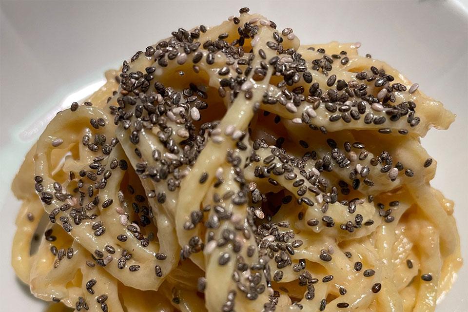 Una sfida che dura da diverso tempo e che non finisce mai. Perché con le idee di Ismaele Saisi da Barga i nostri tagliolini Indomabili sono stimolati a non cedere mai a nessuna sfida. Insomma una sfida alla pari con crema di noci e semi di Chia. Buon Mercoledì