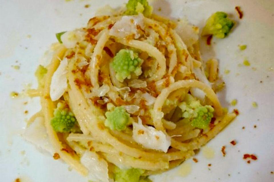 Spaghetti Latini Senatore Cappelli con baccalà, broccolo