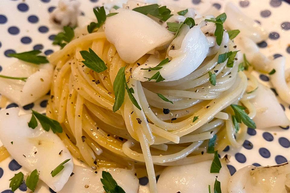 Spaghettini delicati e leggeri con seppioline e extravergine. Grazie Manlio Lovascio, in arte MomaDJ.Della serie, Le ricette degli amici. Buongiorno e buon Mercoledì