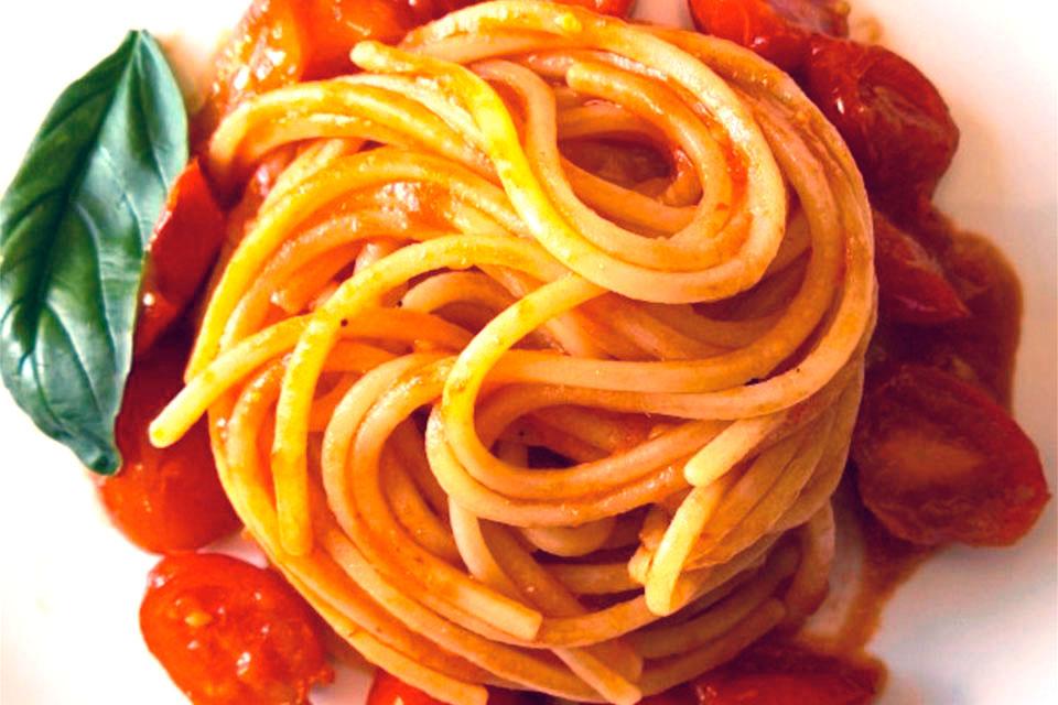 Sono i nostri spaghetti chitarra semplicemente con pomodorini e extravergine.