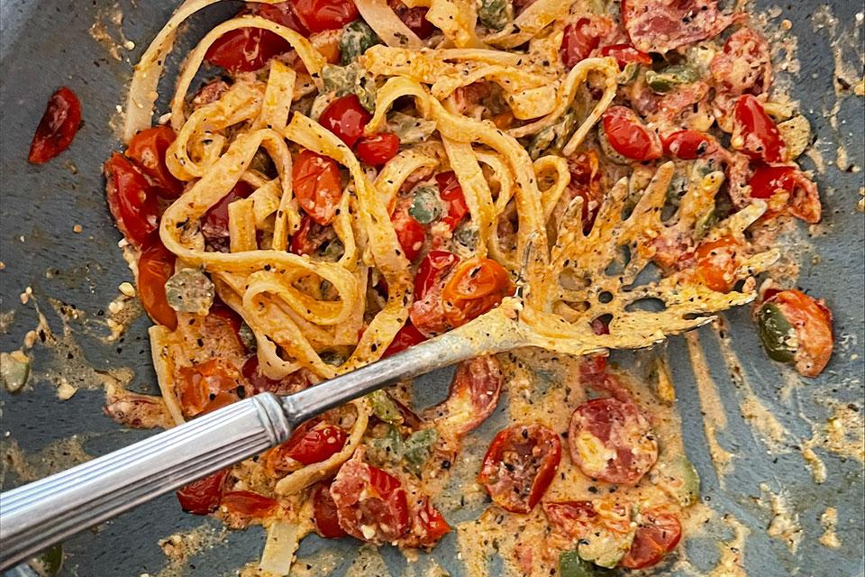 ... sapete di chi sono questa fettuccine all'uovo con pomodorini al forno?Sappiamo solo le lui si chiama Fabrizio... buon Sabato a Casa di Amici