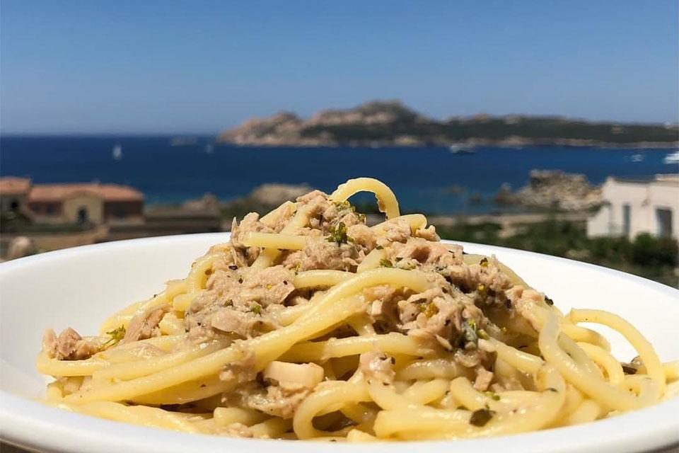 Ci scrive Roberta Conti durante le sue vacanze al mare: Il panorama non cambia, è quello della Baia di Santa Reparata, la pasta nemmeno, è quella di Carla Latini, ma nel sugo, oltre al tonno, ci sono i deliziosi fiori di finocchietto selvatico, ormai gli ultimi, viste le razzie di bipedi golosi come me.