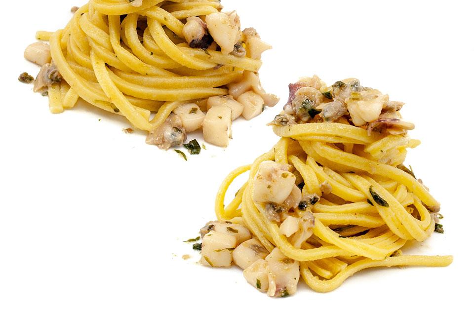 Oggi la sua paziente moglie e bravissima cuoca ha cucinato i Tagliolini Indomabili con vongole e seppie. E una matassina ruba sempre il primo piano... Buongiorno!