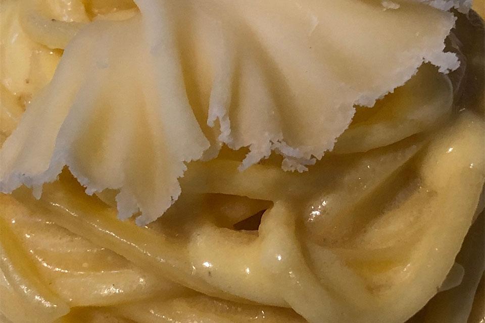 'Torni a casa in fretta e furia, stanca ma felice per la lunga giornata di lavoro a scuola, e hai voglia di qualcosa di confortante e corroborante' ci scrive la nostra amica Roberta Conti. Ha creato uno zabaione salato con il formaggio Tete de Moine e lo ha avvolto intorno alle nostre Trenette. Che dire? Bellissima idea!