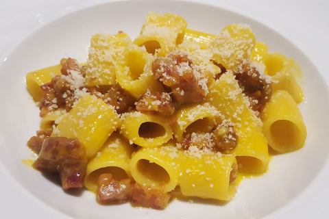 Fusilli grandi Cappelli con crema di cavolfiore e salsiccia aromatizzata al rosmarino...
