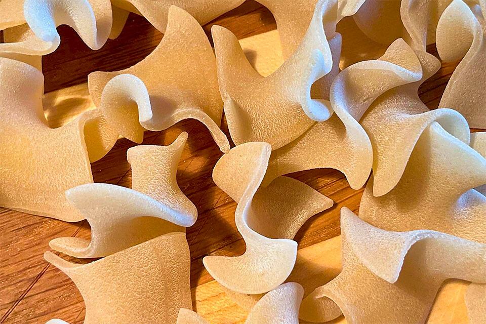 Esaltano la ruvidità e, in questo caso, visto che si tratta dei Trucioletti Cappelli, il colore della superficie della pasta. Il Cappelli ambrato come le sue spighe...