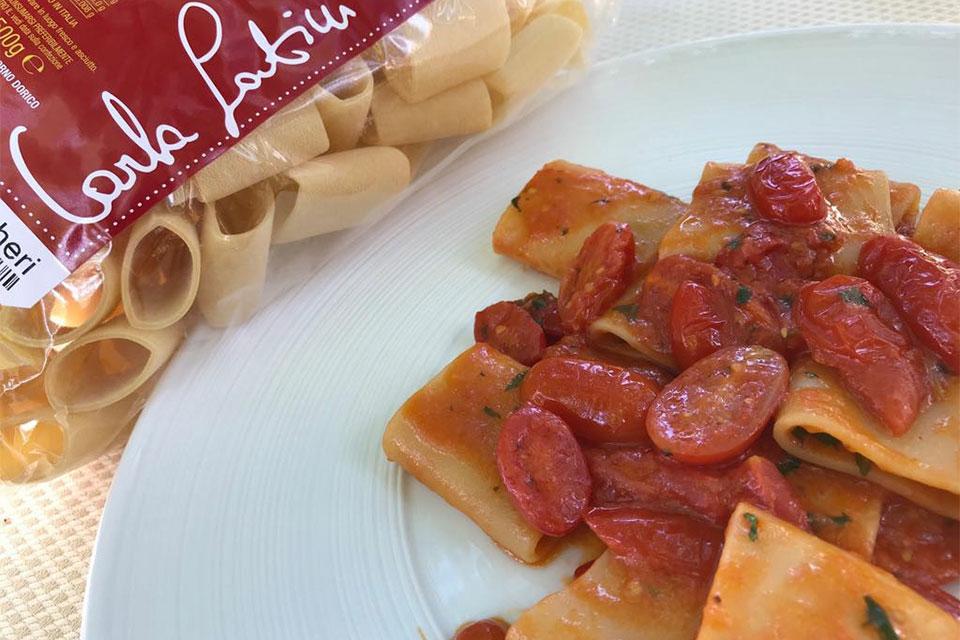 Mezzi paccheri e pomodorini. A domani per la seconda.